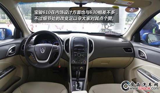 內(nèi)飾和配置方面,寶駿610的內(nèi)飾整體風格與630基本一致,配色依然采用上深下淺的風格。方向盤依然采用多功能三幅設計,儀表盤則采用了雙表盤的設計,中央還增加了胎壓監(jiān)測顯示功能,并且增加了藍色背光顯示,中控臺兩側的出風口處還增加了啞光亮銀條加以裝飾。新車全系標配了自動恒溫空調(diào)系統(tǒng)、前側安全氣囊、TPMS胎壓監(jiān)測和EPS電動助力轉向等實用型的科技配置。另外,新車還將提供可選裝的8寸帶DVD導航系統(tǒng)的彩色屏幕。