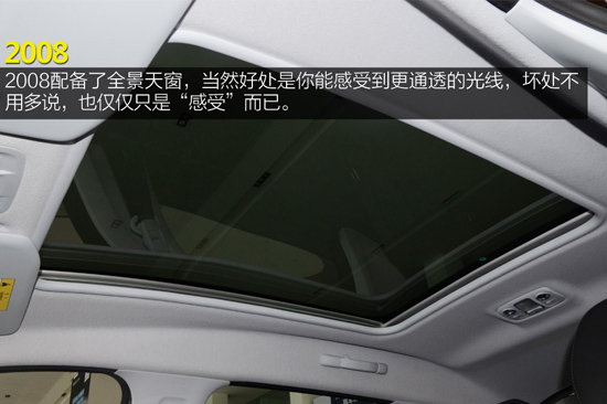 “你是喜歡不能打開的全景天窗還是喜歡可以打開的一般的小天窗”?這話不只一個人曾經(jīng)問過我,如今來看,真在現(xiàn)實的創(chuàng)酷和標(biāo)致2008上遇到了。2008配備了全景天窗,當(dāng)然好處是你能感受到更通透的光線,壞處不用多說,也僅僅只是“感受”而已。