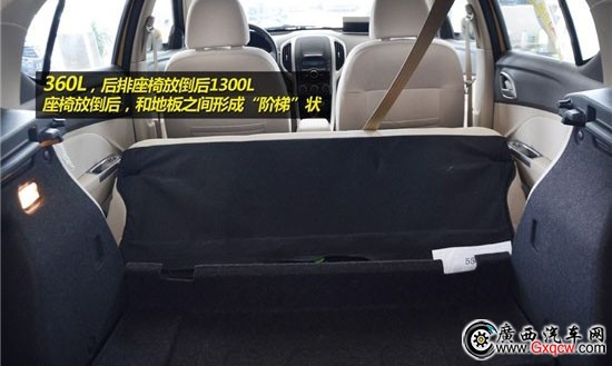 后備箱初始容積360L,后排座椅放倒后可以擴充至1300L,需要注意的是,座椅放倒后,和地板之間會形成明顯“階梯”狀,實用性會受到不小的影響。