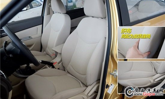 高配車型配備了皮質(zhì)座椅,其它車型均配備織布座椅,而實拍的低配車型也沒有配備座椅高低調(diào)節(jié)這項功能。
