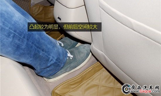 后排中央地板的凸起較為明顯,但前后空間較大,所以后排中央乘客的腿部還是能找到較為舒服的位置。