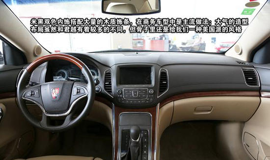 和大多數(shù)中級(jí)車的手法類似,榮威950采用了深淺搭配的內(nèi)飾顏色,從視覺中營造那種屬于商務(wù)人士的氛圍。車內(nèi)多處鍍鉻裝飾的使用充分吧滿足了商務(wù)人士的喜好。中控臺(tái)采用了“貫穿式”T型連體設(shè)計(jì),得益于1857mm的車寬,中央控制區(qū)的面積足夠?qū)掗,為前排駕駛員與乘客營造出更適宜的乘坐使用空間。深淺搭配的內(nèi)飾色調(diào)、明線縫制的皮面表層讓榮威950的內(nèi)飾顯得豪氣十足。