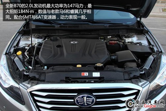 動(dòng)力方面,全新B70采用了2.0L發(fā)動(dòng)機(jī),最大馬力147匹,最大扭矩為184牛米。這款發(fā)動(dòng)機(jī)依舊來源于馬自達(dá)的技術(shù),產(chǎn)品性能和成熟度都非常高。傳動(dòng)系統(tǒng)發(fā)那個(gè)面,有六速手動(dòng)及六速自動(dòng)變速箱可選,整套動(dòng)力系統(tǒng),表現(xiàn)全面均衡。