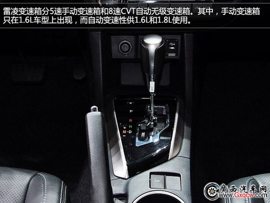 動力傳動方面:廣汽豐田雷凌配備了1.6L和1.8L兩種排量發(fā)動機。1.6L發(fā)動機最大功率90kW最大扭矩154Nm,1.8L發(fā)動機最大功率103kW最大扭矩173Nm。傳動系統(tǒng)采用5速手動變速器和可模擬8速的CVT無級變速器。懸掛方面則是前麥弗遜式獨立懸掛,后扭力梁式非獨立懸掛。