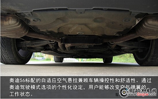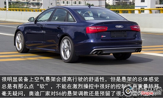 最后讓小齊不解的地方是奧迪S6的懸架調(diào)教。奧迪S6標(biāo)配的自適應(yīng)空氣懸掛兼顧車(chē)輛操控性和舒適性。通過(guò)奧迪駕駛模式選項(xiàng)的個(gè)性化設(shè)定,用戶能夠改變空氣彈簧的工作狀態(tài)。在自動(dòng)模式下,當(dāng)車(chē)速超過(guò)120公里/小時(shí),空氣彈簧會(huì)自動(dòng)將車(chē)身高度降低10毫米以增加高速行駛穩(wěn)定性,并減少空氣阻力;在動(dòng)態(tài)和高效模式下,車(chē)身可降得更低;而舒適模式下,車(chē)身始終保持默認(rèn)高度。在時(shí)速不超過(guò)80公里/小時(shí)的情況下,駕駛者可通過(guò)激活升高模式,將車(chē)身離地間隙增加20毫米,以臨時(shí)提升車(chē)輛的通過(guò)性。很明顯裝備上空氣懸架會(huì)提高行駛的舒適性,但是懸架的總體感覺(jué)總是有那么點(diǎn)“軟”,不能在激烈操控中很好的控制車(chē)身重量轉(zhuǎn)移。毫無(wú)疑問(wèn),奧迪廠家對(duì)S6的懸架調(diào)教還是預(yù)留很大的提升空間。