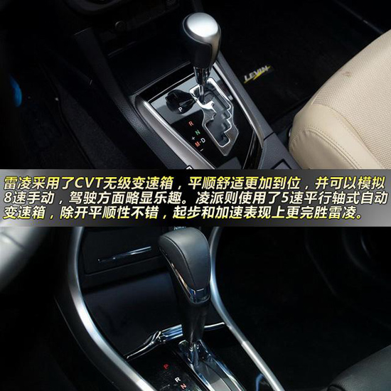動(dòng)力對(duì)比:雷凌配備了CVT無(wú)級(jí)變速箱,凌派則配備了5速自動(dòng),這是兩車駕駛方面的最大區(qū)別