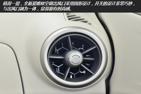 總的來說,內(nèi)飾上,全新愛唯歐延續(xù)了環(huán)抱式設(shè)計(jì)的時(shí)尚風(fēng)格,米色與灰色搭配,細(xì)微之處采用銀色修飾更是恰到好處。而三幅式的多功能方向盤、層次感更強(qiáng)的儀表板、精致方便的手動(dòng)空調(diào)旋鈕、舒適的座椅等細(xì)節(jié)的運(yùn)用,整體更顯得精致,同時(shí)又科技化十足。值得一提的是,全新愛唯歐搭載的MyLink智能車載互聯(lián)系統(tǒng),能夠直接連接手機(jī),使用方便,更讓駕駛者隨時(shí)隨地都可以與外界保持聯(lián)系。