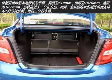 雖然全新愛唯歐是小型車,但其空間表現(xiàn)相當(dāng)不錯(cuò)。首先,其前后排的空間安排適合大多數(shù)人的身高要求。其次,全車擁有多達(dá)21處靈活的儲物空間,十分方便。另外,其后備箱容積更是達(dá)到了458L,相比同級車型,具有明顯的優(yōu)勢。此外,還標(biāo)配了可按4/6比例折疊的后排座椅,載物空間十分靈活、充足。