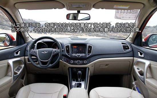 內(nèi)飾和配置方面,奇瑞瑞虎5的內(nèi)飾風格和布局均與艾瑞澤7保持一致。瑞虎5也采用了三輻式的多功能方向盤設計,同時方向盤還集成了定速巡航和藍牙按鍵功能。內(nèi)飾采用上黑下米的雙色布局,整體造型借鑒了TX的設計語言。