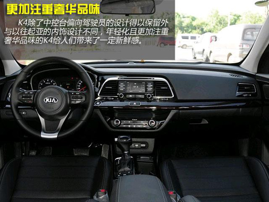 K4除了中控臺(tái)偏向駕駛員的設(shè)計(jì)得以保留外與以往起亞的內(nèi)飾設(shè)計(jì)不同,年輕化且更加注重奢華品味的K4給人們帶來(lái)了一定新鮮感,相當(dāng)出眾的內(nèi)飾氛圍似乎令整車的華麗程度上了一個(gè)檔次,相比于外觀的沉穩(wěn),內(nèi)飾方面顯然要出彩的多。
