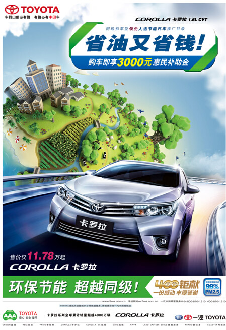 相比原補(bǔ)貼政策,新政策的最大變動(dòng)是把申報(bào)門檻從原來(lái)百公里油耗6.9升的限制調(diào)至5.9升。這對(duì)汽車的燃油經(jīng)濟(jì)性能提出了更高的要求。此次全新卡羅拉、威馳成功入選惠民工程對(duì)象車型,足以證明一汽豐田兩款車型在燃油經(jīng)濟(jì)性及對(duì)環(huán)保節(jié)能方面的技術(shù)投入得到國(guó)家相關(guān)部門的認(rèn)可,極力為國(guó)家環(huán)保事業(yè)做出貢獻(xiàn),也為廣大消費(fèi)者提供經(jīng)濟(jì)、放心的優(yōu)質(zhì)車型。