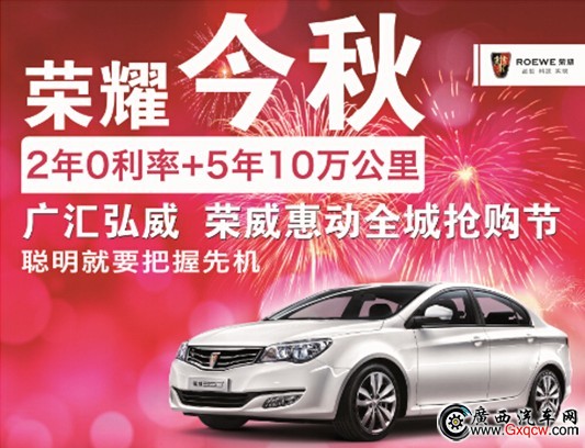 國慶出游開什么車安全?當然首選廣匯榮威汽車啦!即日起至國慶期間,廣匯弘威舉行“榮威惠動全城搶購節(jié)”促銷活動,預約到店試駕送電影票,購車送千元油卡。月銷量過萬家轎之王-榮威350尊享2年0利率及5年或10萬公里超長質(zhì)保。榮威全系車均有廠家限時折扣優(yōu)惠,詳詢0771-3329966。