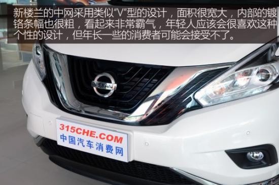 全新樓蘭的外觀設(shè)計擯棄了老款的中庸,采用海外車型的設(shè)計風(fēng)格,犀利的前大燈造型讓新樓蘭的前臉有了一股兇狠勁。中網(wǎng)采用面積寬大的“V”型設(shè)計,配合粗獷的鍍鉻條幅,看起來非常霸氣又顯個性。尾部立體效果很好,但設(shè)計方面就簡潔了很多,有點日產(chǎn)JUKE的味道。尾燈造型與前大燈相呼應(yīng),燈帶樣式也是時下非常流行的設(shè)計。