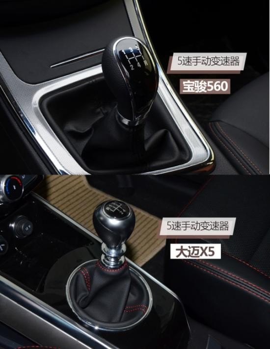 寶駿560和大邁X5都只配備了5速手動變速器,自動擋車型未來都有望相繼推出,據(jù)悉大邁X5將配備CVT無級變速器,而寶駿560將配備AMT變速器,駕駛舒適性方面CVT變速器要優(yōu)于AMT變速器。