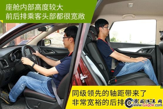 寶駿560的前排空間就很充裕,將座椅調(diào)至合適的位置,頭頂還有非常充足的余量,絲毫不會感到壓抑。軸距達到了2750毫米,加上后排的地板很平整,頭頂處也設置了一定的凹陷,在后排所營造的寬敞舒適的乘坐空間在同級別車型中確實難覓敵手。