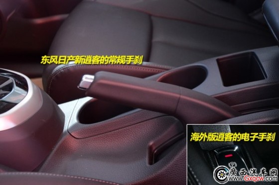 實拍車型配備的是常規(guī)手剎,而在海外銷售的逍客配備的是電子手剎,不知道新逍客是全系都配備常規(guī)手剎,還是更高配置的車型才配置電子手剎呢?