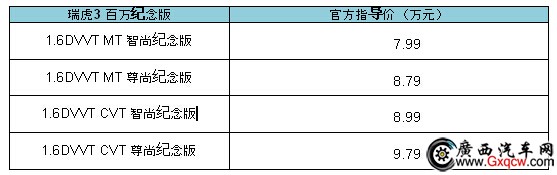 10月21日,在瑞虎系車型迎來上市10年、全球用戶突破100萬的時刻,奇瑞汽車宣布推出瑞虎3 百萬紀(jì)念版車型。定位為“實尚SUV典范”的瑞虎3 百萬紀(jì)念版車型標(biāo)配ESP,官方售價區(qū)間7.99~9.79萬元。憑借多年的口碑積累和再度提升的產(chǎn)品力,瑞虎3 百萬紀(jì)念版將與“新瑞虎5”形成全新“雙虎”組合,為用戶呈上更好的駕乘體驗。