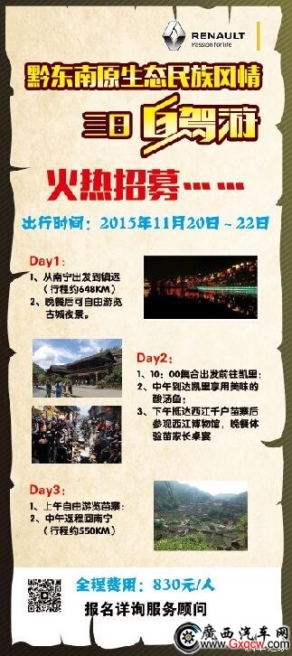 8:00南寧市雷諾4S店集合,裝對(duì)講機(jī),貼車貼,發(fā)車儀式