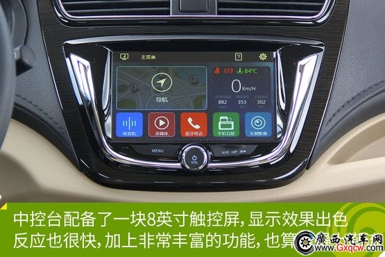 中控臺配備了一塊8英寸觸控屏,顯示效果出色、反應也很快,加上非常豐富的功能,即便是滿足年輕群體多樣化的需求也不在話下。