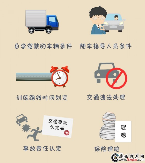 按照嚴格管理、保障安全的要求,制定實施用于自學(xué)駕駛的車輛條件、隨車指導(dǎo)人員條件以及訓(xùn)練路線時間劃定、交通違法處理、事故責(zé)任認定、保險理賠等管理制度。