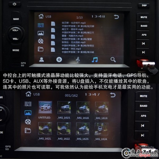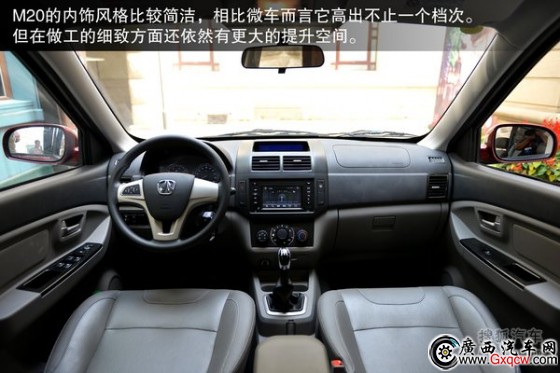 M20的內(nèi)飾風(fēng)格比較簡潔明了,多功能方向盤上采用了大面積地銀色裝飾,同時(shí)中控臺(tái)上的可觸摸式液晶屏功能更為強(qiáng)大,支持藍(lán)牙電話、GPS導(dǎo)航、SD卡、USB、AUX等外接音源,將U盤插入其中,不僅能播放其中的歌曲,連其中的照片也可讀取。