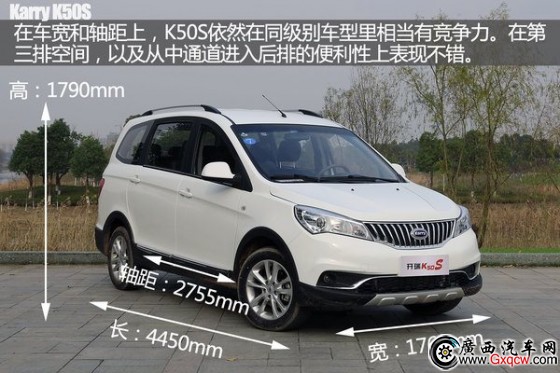 K50S長(zhǎng)寬高尺寸分別為4450/1760/1790mm,軸距2755mm,離地間隙為170mm。新車(chē)采用2+2+3的7座布局,其第三排座椅能夠進(jìn)行多樣組合設(shè)定,最大容積可達(dá)2900L。