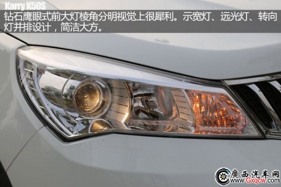 開(kāi)瑞K50S整車(chē)線條流暢,造型飽滿(mǎn)。前臉采用了"新鋒銳式設(shè)計(jì)"倒梯形的直瀑式前格柵顯得蒼勁有力,晶鉆鷹眼式前大燈組與格柵銜接流暢。側(cè)面來(lái)看,一條腰線從前翼子板延伸到了尾燈組。尾部新車(chē)的設(shè)計(jì)則是中規(guī)中矩。