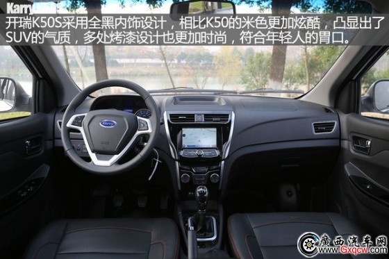 開(kāi)瑞K50S中控臺(tái)采用全黑色內(nèi)飾設(shè)計(jì),整體設(shè)計(jì)比較簡(jiǎn)潔。新車(chē)配備有多功能方向盤(pán)并帶有銀色裝飾,儀表盤(pán)采用了藍(lán)色和白色的配色,兩個(gè)表盤(pán)中間還有一個(gè)行車(chē)信息顯示屏。另外,中控還配備了7英寸觸摸控制顯示屏以及能顯示多種信息的多功能后視鏡。