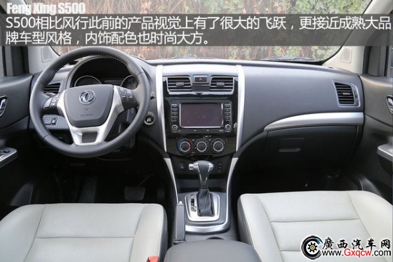 S500相比風行此前的產品,內飾設計上更顯得成熟與和諧,有著理想的視覺體驗,內飾的用料上也有了較大的進步,同時包括配置方面,繼續(xù)向著便利與實用方向不斷添彩,配備GPS導航、定速巡航、胎壓監(jiān)測、車載藍牙、電動后視鏡折疊等。安全配置上,前排雙安全氣囊、側氣囊、ESP都可以在S500上找到,值得肯定。