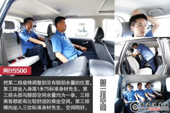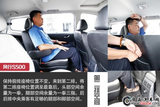 七位標準身材小伙子同時坐入S500,都能有自己合適的空間,車內的乘客不會感到局促。第二排兩個座椅可以前后調節(jié),以保證足夠的腿部空間,座椅采用皮革面料,打孔的設計有著不錯的視覺感。值得注意的是,七個座位都擁有頭枕及安全帶,第二排兩個座椅配備了兒童安全座椅,后排空調采用地板式出風口,而不是頂置式,避免了空調直吹老人和兒童。