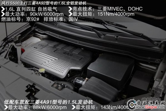 S500采用了目前風行主打的三菱1.5L和1.6L兩款發(fā)動機,1.5L發(fā)動機主打低端車款,以拉低售價,1.6L發(fā)動機則為S500的主打發(fā)動機。同時,變速器提供5速手動,和之前在景逸XV上已經使用的CVT無級變速器,這款變速器對車輛駕駛平順性以及燃油經濟性上有著突出貢獻。懸掛使用與轎車相同的前麥弗遜式獨立懸掛,后拖曳臂式非獨立懸掛。