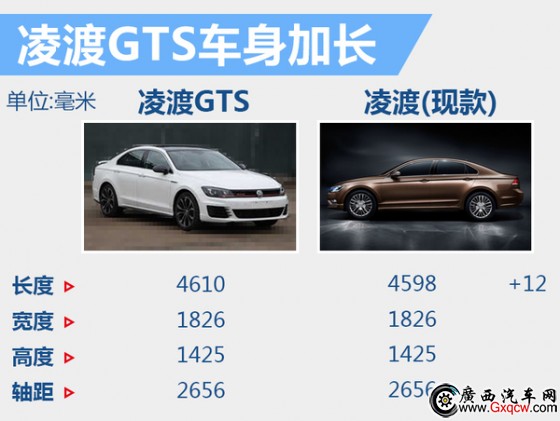 凌渡是上汽大眾2015年初推出的全新轎跑車型,這款車目前動力上搭載1.4T和1.8T兩款渦輪增壓發(fā)動機。在此基礎(chǔ)上,上汽大眾將為消費者提供更多動力選擇。近日,網(wǎng)通社從國家工信部了解到:凌渡GTS(即凌渡高性能版)搭載2.0T渦輪增壓發(fā)動機,車身長度增加12毫米。與現(xiàn)款車型相比,凌渡GTS在動力上有了顯著提升,車身尺寸也得到升級。