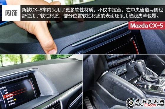 CX-5內(nèi)飾整體風格偏運動范兒,整體布局清晰而使用方便,炮筒式儀表是馬自達的經(jīng)典設(shè)計之一,鋼琴烤漆裝飾條提升車內(nèi)美觀度。