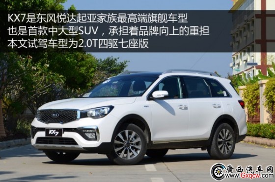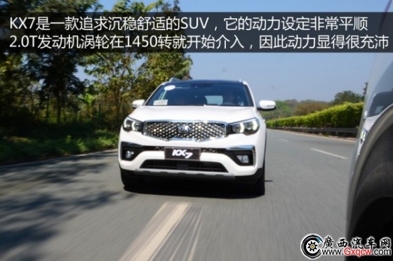 根據(jù)官方最新的消息,KX7將于3月17日在南京上市,屆時將推出兩個排量、2.0L/2.4L/2.0T三種動力車型,并且提供5座和7座布局形式。本文試駕車型為2.0T四驅(qū)七座版。在之前我的同事已經(jīng)對KX7的外觀、內(nèi)飾和空間進行了詳細的體驗,因此本文重點則對KX7的動態(tài)表現(xiàn)進行評價。