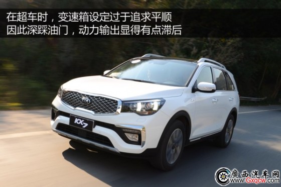 盡管KX7的2.0T四驅(qū)車型整備質(zhì)量達到了1840KG,但2.0T GDI的發(fā)動機拉動它并不費力。在試駕過程中我們車上有五位成年人,動力依然顯得游刃有余。只不過在超車時,變速箱設定過于追求平順,因此深踩油門,動力輸出顯得有點滯后。
