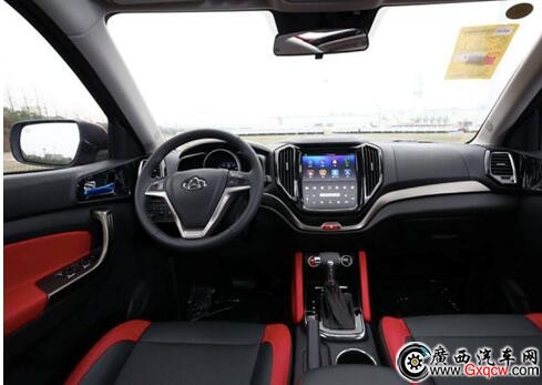 內(nèi)飾方面,紳寶X55采用了運動感強烈的黑色為主色調(diào),中控臺采用了“T形”布局,按鍵簡潔,位置操作起來也很方便,空調(diào)出風(fēng)口中央還鑲嵌時鐘。配置方面,新車搭載了三輻多功能方向盤、中控臺顯示屏、皮質(zhì)座椅、仿碳纖維樣式裝飾板等。另外據(jù)悉高配車型還將配備全景天窗。