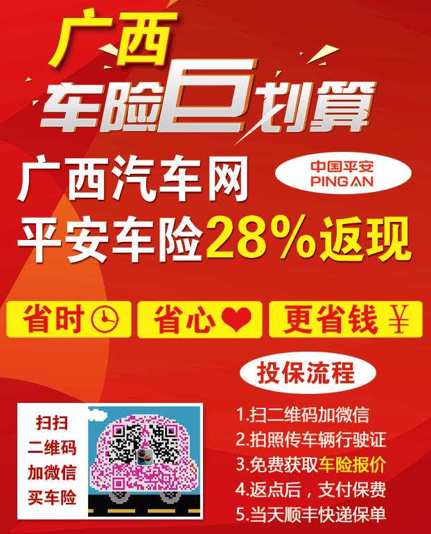 (廣西汽車(chē)網(wǎng) 訊)廣西平安車(chē)險(xiǎn)聯(lián)合廣西汽車(chē)網(wǎng)推出平安車(chē)險(xiǎn)續(xù)保團(tuán)購(gòu)折上折活動(dòng),續(xù)保購(gòu)買(mǎi)車(chē)險(xiǎn)的汽車(chē)網(wǎng)車(chē)主朋友,將享受保單金額28%的現(xiàn)金返現(xiàn)。