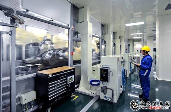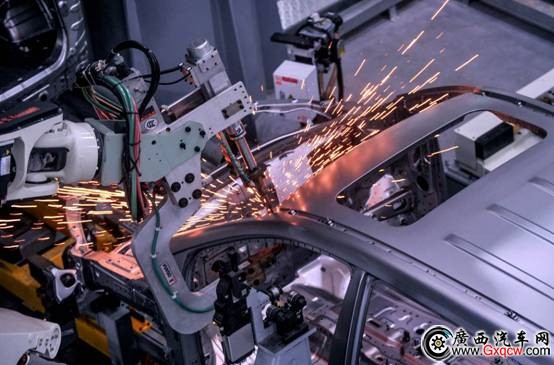焊接車間采用同平臺(tái)多車型柔性共線生產(chǎn)、藍(lán)光自動(dòng)檢測(cè)、EMS傳輸、激光在線檢測(cè),擁有機(jī)器人440臺(tái),自動(dòng)化率達(dá)72%,屬國(guó)內(nèi)一流。