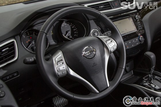 內(nèi)飾方面,逍客的內(nèi)飾風(fēng)格采用了名為飛翼式的環(huán)抱一體化布局,整體風(fēng)格與外觀相呼應(yīng),偏向年輕運動,很好的迎合了年輕人的審美。方向盤,采用了三輻式設(shè)計,方向盤多功能按鍵采用的是鍍鉻裝飾條,這樣給人感覺一種高端的運動感。儀表盤方面同樣采用的是雙圓形類似炮筒式設(shè)計理念,不過中間的小屏幕顯示的信息非常豐富,行車電腦里還有對車道偏離提醒、盲區(qū)檢測、緊急制動以及駐車輔助等功能。