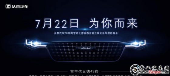 (廣西汽車網(wǎng) 訊)近日編輯從南寧市信義德眾泰汽車4S店了解到,7月22日眾泰T700南寧站上市發(fā)布會(huì)暨眾泰全系搶購會(huì)將在南寧銀林山莊舉行。眾泰告訴你熱銷“福利”擋不住、“優(yōu)惠”擋不住7月22日、有優(yōu)惠!有折扣!南寧站上市發(fā)布會(huì)暨全系搶購會(huì),限時(shí)大優(yōu)惠。即日起開始預(yù)售誠意券199元當(dāng)日誠意券還可以扣3000元購車優(yōu)惠即刻起報(bào)名可獲得以下優(yōu)惠: