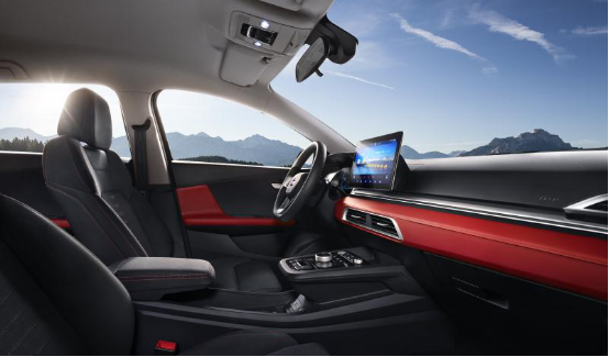 從圖中可以看出,e2的內(nèi)飾通過一塊效果極為出色的觸控大屏大幅簡化了物理按鍵,儀表臺的設(shè)計(jì)多用橫向線條,最大限度的拉伸人的視覺區(qū)域,同時(shí)恰到好處地橫向亮條裝飾件再次強(qiáng)調(diào)了寬體設(shè)計(jì)。紅黑的內(nèi)飾配色讓我們感受到優(yōu)雅之余,更是嗅到了一絲性能車的戰(zhàn)斗氣息。