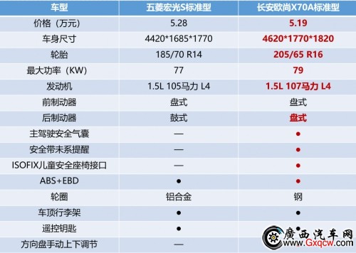從安全配置上來(lái)看,長(zhǎng)安歐尚X70A 1.5L標(biāo)準(zhǔn)型比五菱宏光S 1.5L標(biāo)準(zhǔn)型 多出了主副駕安全氣囊、安全帶未系提醒功能、ISOFIX兒童座椅接口、四盤碟剎等配置,在保障車內(nèi)駕乘者的行車安全方面做的更出色。