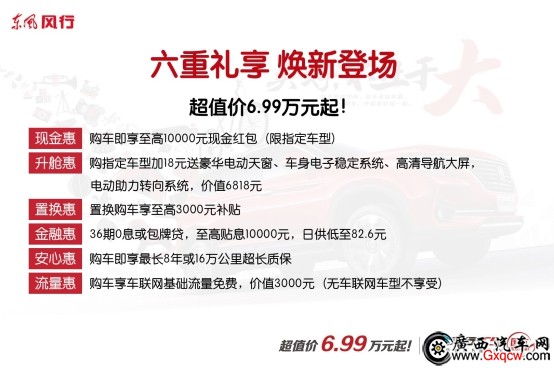 在10萬左右SUV級別市場中,新風(fēng)行T5性能表現(xiàn)亮眼,品質(zhì)把握相當(dāng)出色,對于日常代步和家庭自駕游的車主可以說是不二之選。獻(xiàn)禮華誕,目前購置風(fēng)行T5/T5L最高可享10000元現(xiàn)金紅包、36期0息或包牌貸、最長8年或16萬公里超長質(zhì)保等超值優(yōu)惠,有興趣的用戶不妨到當(dāng)?shù)亟?jīng)銷商店面試車。