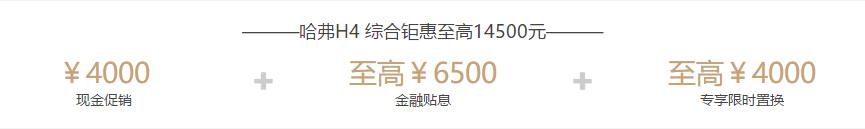 這還只是哈弗H4目前官方讓利中的一部分,除此之外,還有包括至高4000元置換補貼以及4000元現(xiàn)金優(yōu)惠在內(nèi)的14500元綜合鉅惠,都可以讓消費者感受到來自哈弗品牌的滿滿誠意。