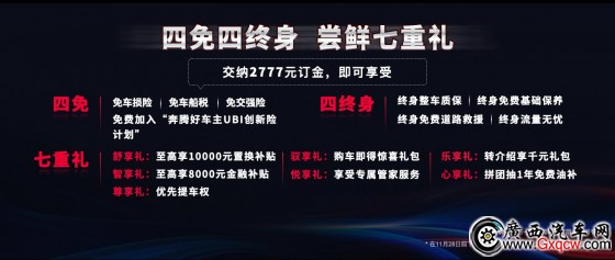全新第三代奔騰B70在線下開啟“四免四終身,嘗鮮七重禮”預售政策。即日起至11月28日,用戶只需交納2777元訂金,就能享受免車損險、免車船稅、免交強險、免費加入“奔騰好車主UBI創(chuàng)新險計劃”,獲得終身整車質(zhì)保、終身免費基礎(chǔ)保養(yǎng)、終身免費道路救援、終身流量無憂。同時,更有舒享禮、智享禮、馭享禮等七重豪禮,為用戶帶來“購車無憂”價值體驗。