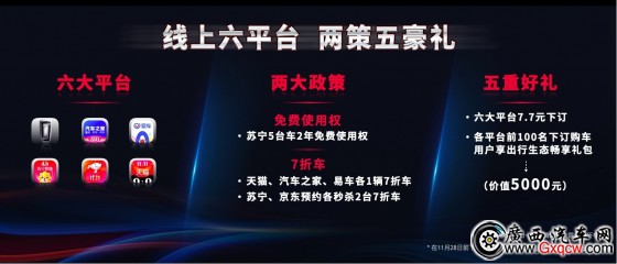 線下政策豐富,線上政策同樣貼心。用戶通過奔騰官網(wǎng)、廣西汽車網(wǎng)、易車、蘇寧、京東、天貓等六大平臺下單,不止有機會抽到7折車的權(quán)益,更有望將出行生態(tài)暢享禮包帶回家。此外,在北京衛(wèi)視《蘇寧易購1111超級秀》上,奔騰還將抽出5臺B70的 2年免費使用權(quán)。如此給力的預售政策,堪稱今年“雙十一”的硬核玩家。