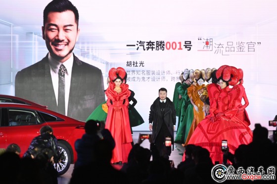 國際知名”鬼才”設計師、全新第三代奔騰B70的001號“潮流品鑒官”胡社光,以“光影哲學之性感曲面”為靈感來源,通過最新服裝作品,大秀汽車設計與時尚潮流的美學共振,將現(xiàn)場氛圍推向高潮。他表示,全新第三代奔騰B70的“戈”元素大燈、變曲率設計、GT風格掀背等元素,無論韻律或力量,都運用的恰到好處,這是對新潮、性感以及國潮的全新詮釋,也給他帶來了新的設計靈感。