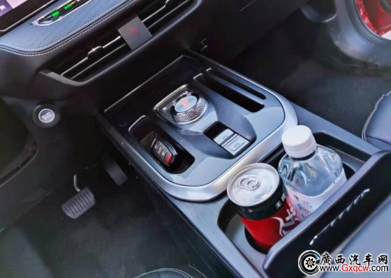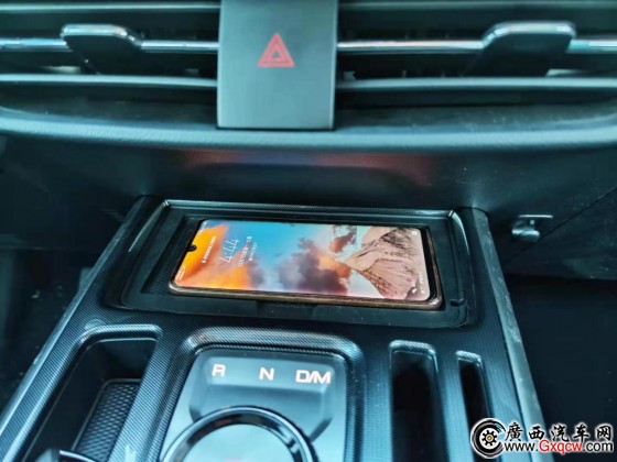 在炫目光刻換擋旋鈕前方,還有支持無線充電的置物板,上車后把手機(jī)放上去,時刻讓你保持電量充足。