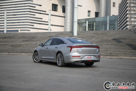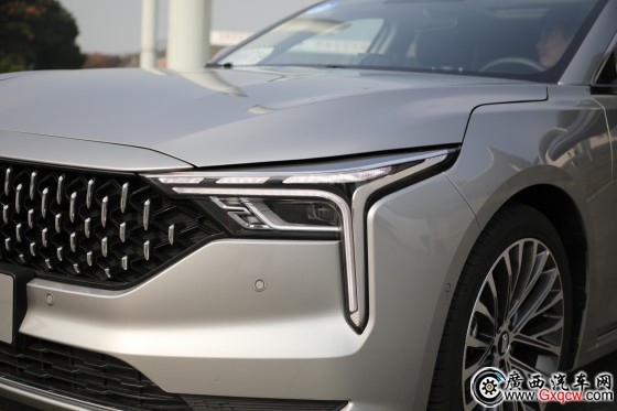 從車頭看,大燈設計靈感源于中國古代兵器“戈”,功能上與格柵裝飾進行融合,打造具有辨識度家族式特征?雌饋矸浅4髿,又不失時尚。