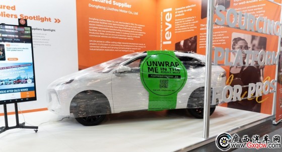 展臺上,一款緊緊被包裹著的東風柳汽汽車,貼著“Unwarp me in the right way (請用正確的方式打開我) !” 此舉寓意破繭成蝶,東風柳汽的新能源車,借助阿里國際站全鏈路數(shù)字化外貿(mào)能力,蝶變成有實力亮劍汽車大本營歐洲市場的生力軍。